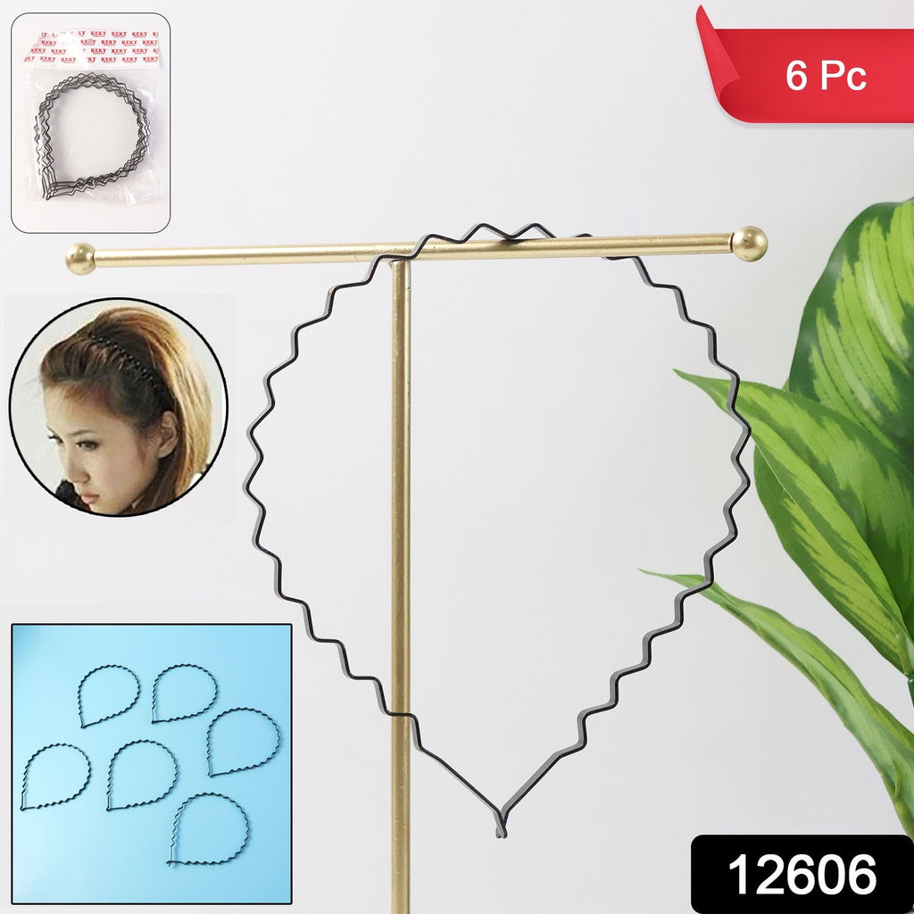 Premium Metal Zigzag Hair Bands for Men & Women – Flexible Black Wavy Headband with Anti-Slip Grip, Lightweight Rust-Proof Design for Sports, Gym, Makeup & Everyday Styling – Comfortable, Unisex Elastic Steel Hair Accessories (Pack of 6 Pcs)