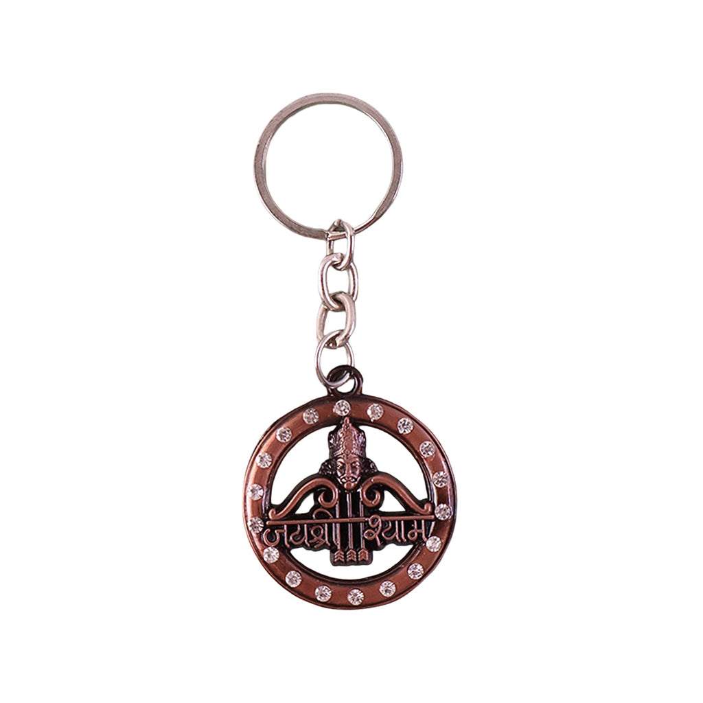 Decorative Metal “Jai Shree Shyam” Keychain with Engraved Religious Design, Crystal Accents & Durable Key Ring for Bike, Car, Home, Office and Daily Use (1 Pc)