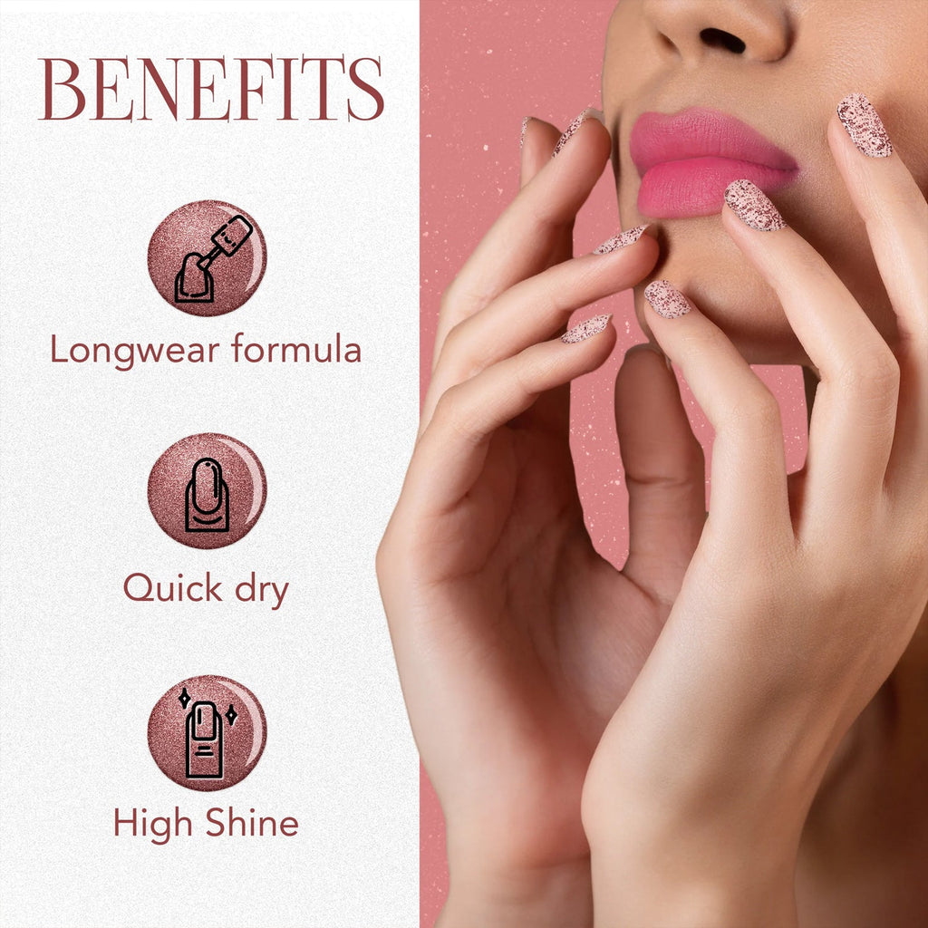 OG Beauty, Metallic Rose, Starlet Glitter Nail Paint, Glitter Nail Polish, Sparkling Nail Paint, Shiny Glitter Finish,Party Nail Polish, Festive Nail Color,Nail Polish for Women, Glamorous Nail Look, Dazzling Rose Nails, Metallic Nail Polish,Bold Nail Color