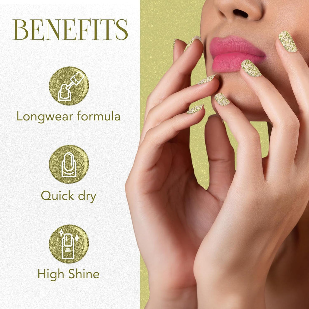 glitter nail polish,sparkling nail color, long lasting nail polish, quick dry nail paint, shiny glitter finish, party wear nail polish, festive nail color, OG Beauty nail polish, Sunshine Gold nail paint,glossy glitter nails, shimmer nail polish, glam look nail color
