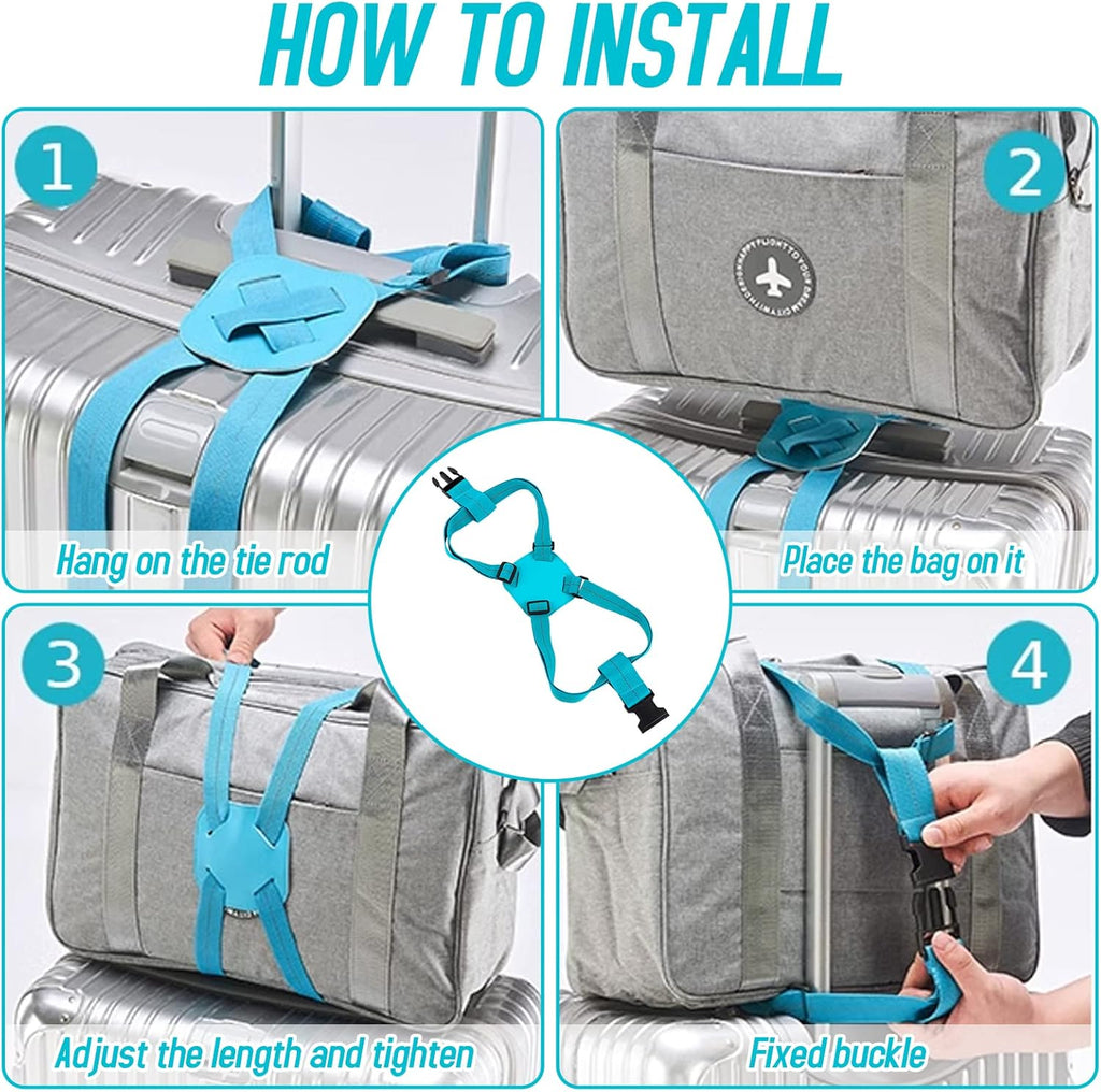This adjustable travel luggage strap is a convenient and secure way to attach an extra bag, backpack, or handbag to your suitcase while traveling. Designed with an “X” cross strap configuration, it evenly distributes weight and prevents your top bag from slipping off during movement. The elastic adjustable design fits most luggage sizes and keeps everything stable when rolling through airports or stations. The durable buckle ensures a tight grip and easy release, while the compact design allows it to fold neatly into your bag when not in use. Ideal for travelers who want to move hands-free and keep their luggage organized and safe.