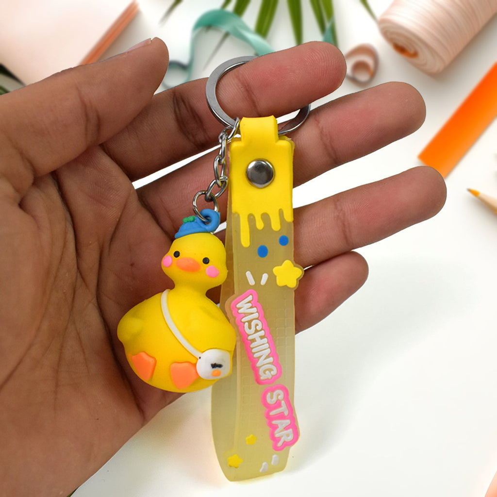 Cute Cartoon Silicone 3D Key Chain with Metal Hook & Strap Charm - Fun Key Rings Gift for Kids, Girls, Boys, Men & Women Return Gift Decoration Rubber Non Toxic Adult Keyring Bag (Pack of 1)