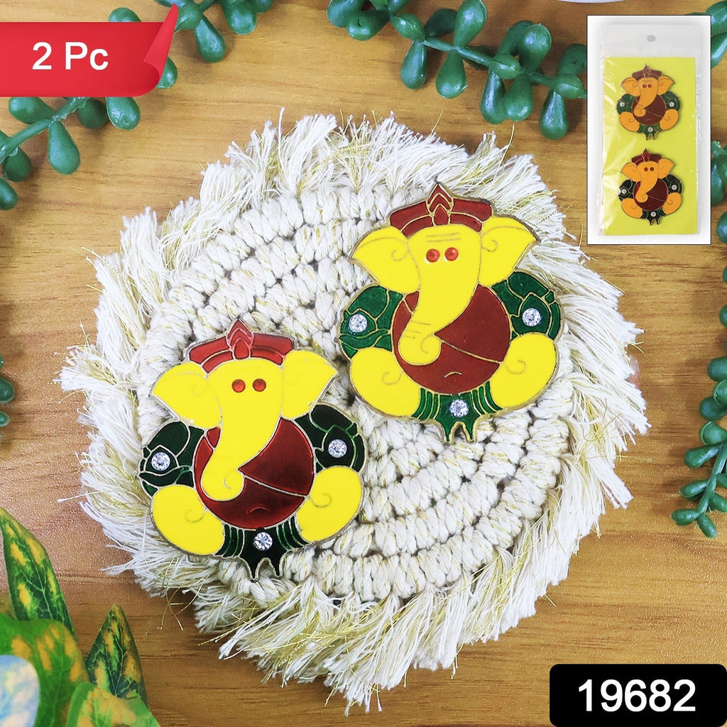 2 Pcs Decorative Lord Ganesha Wall Hanging Stickers – Colorful Ganpati Wall Decor for Home, Office, Temple, Festive Decoration and Gifting