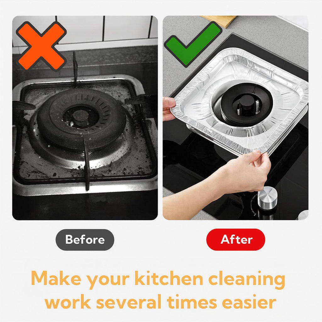 Keep your kitchen spotless and your stove looking brand new with this 10 Pc Set of 23x23 cm Aluminum Gas Stove Burner Protector Covers. Designed for convenience and hygiene, these reusable non-stick liners catch oil, grease, and food spills, preventing stubborn stains and residue buildup around the burners. Made from durable, heat-resistant aluminum foil, they withstand high cooking temperatures while remaining easy to clean and maintain. Simply remove and replace as needed for a cleaner, more efficient cooking space. Ideal for all types of gas stoves, these protectors ensure effortless maintenance and enhanced kitchen hygiene.