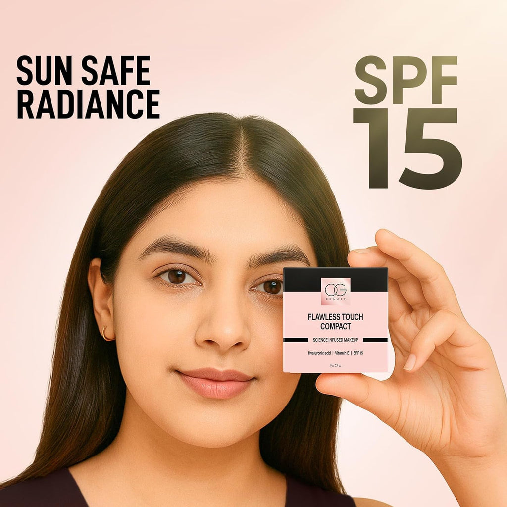 compact powder, flawless touch powder, OG Beauty compact, matte finish powder, long lasting face powder, Java shade powder, hyaluronic acid powder, vitamin E enriched makeup, face makeup powder, 9 gm compact, oil control powder, lightweight face powder, smooth finish powder, daily makeup essentials, natural finish compact