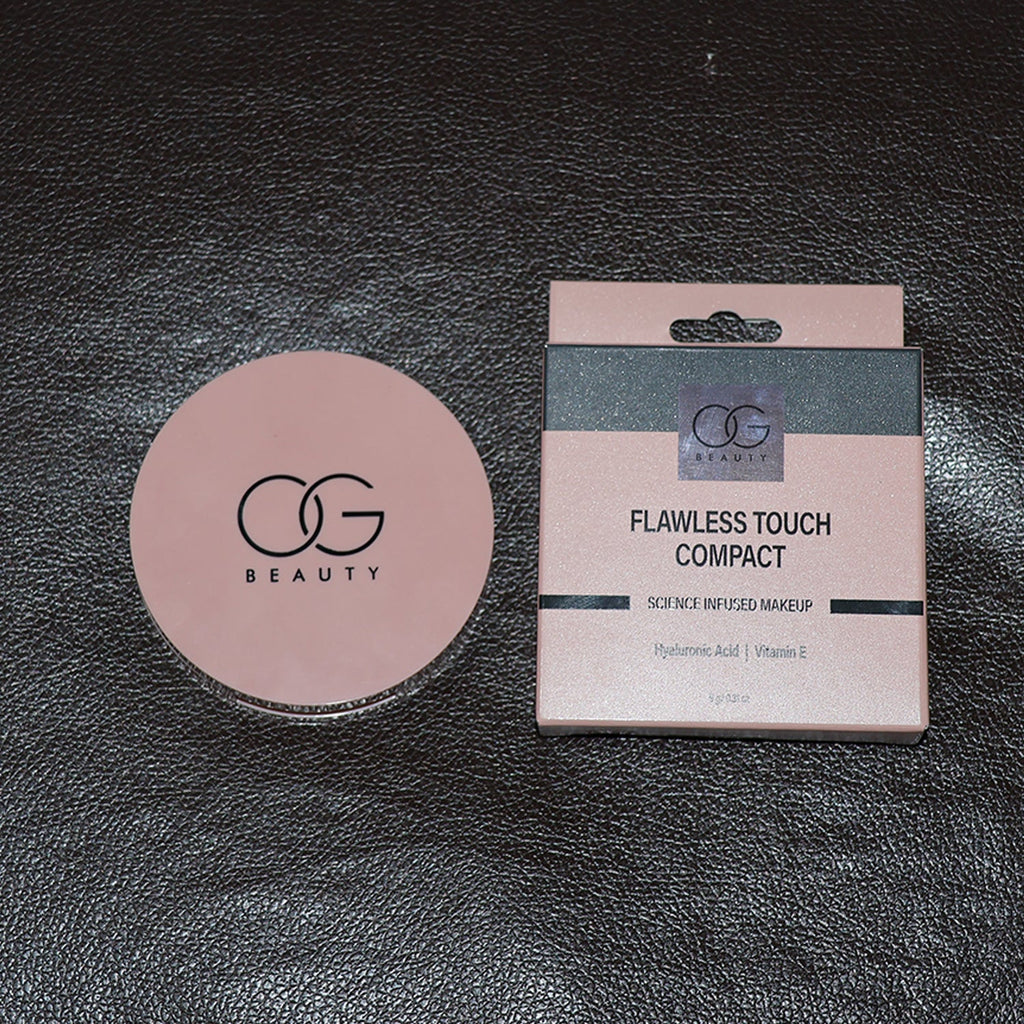 Achieve a flawless, natural look with the OG Beauty Flawless Touch Compact Powder in the elegant Brew shade. This compact is infused with Hyaluronic Acid and Vitamin E, giving your skin a smooth, radiant finish while keeping it nourished. Its lightweight, long-lasting formula blends seamlessly, offering even coverage and shine control throughout the day. Designed with a built-in mirror and soft sponge applicator, it ensures quick and easy touch-ups anywhere, anytime. Perfect for daily wear and special occasions, this compact enhances your makeup routine with a matte yet natural finish.