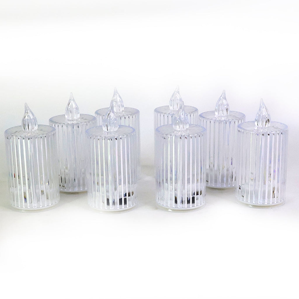 Bring elegance and warmth into your home with the Premium Crystal Effect LED Flameless Candle Lights Set of 8. These beautifully crafted LED candles mimic the glow of real candles without the risks of fire or smoke. Designed with a crystal-style ribbed body and flame-shaped top, they create a sparkling, luxurious ambiance that enhances any setting. Perfect for festive occasions, romantic dinners, spiritual decor, and everyday home beautification, these candles provide a long-lasting, reusable, and safe lighting solution for all ages.
