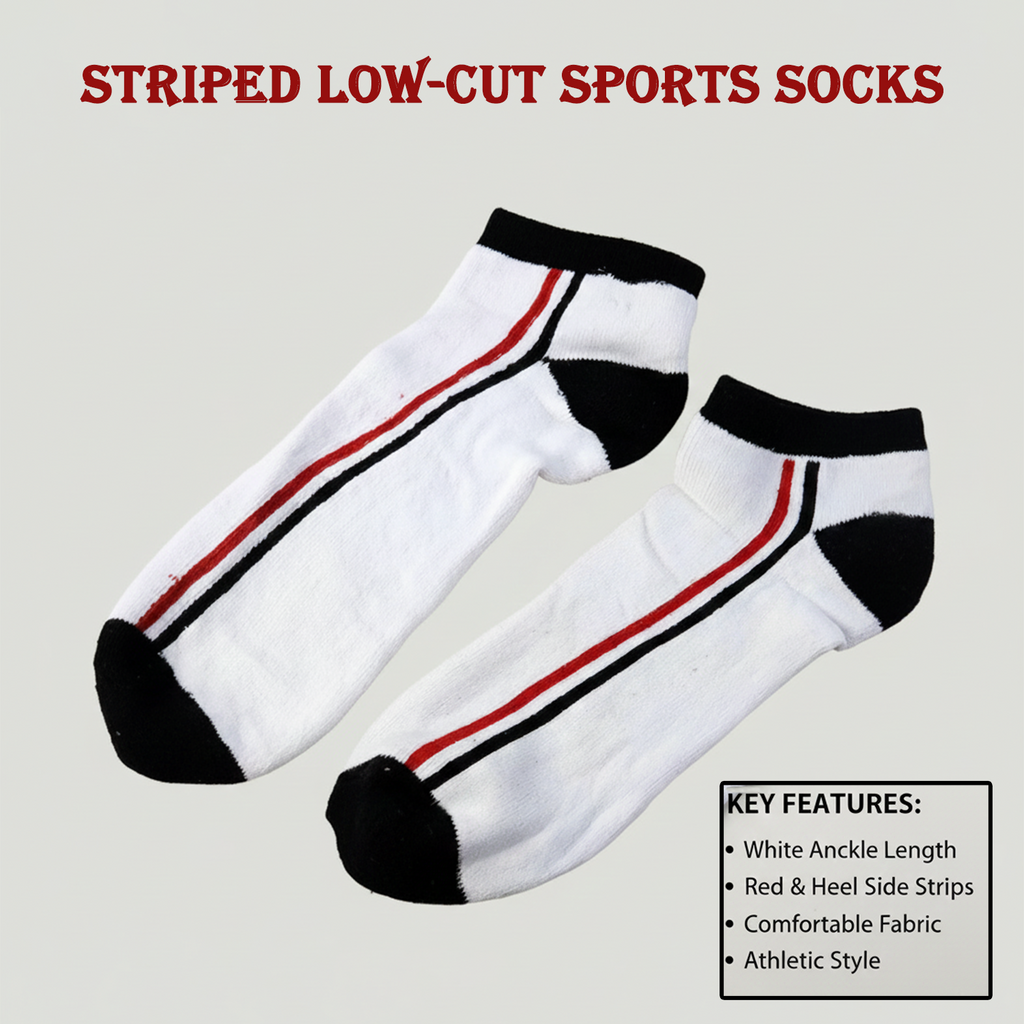 White & Black Striped Low-Cut Sports Socks (1 Pair)
